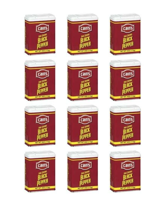 Cain's Pure Ground Black Pepper, 12 Bottles, 4 Oz Each