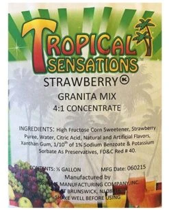 Now offering tropical sensations frozen cocktail smoothie or blender mix this sale is for 1 bottle 64 oz full case Blue Hawaii 4+1 concentrate this product is made with 100% natural fruit juice puree and other fine ingredients. This product can be used with a blender or any type of frozen beverage or Granita machine. Just and water or alcohol for a great cocktail or milk for a fantastic creamy smoothie.